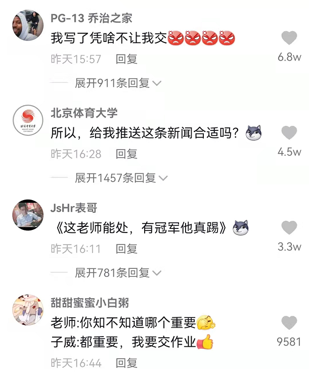 冬奥冠军任子威补交作业,却被老师踢出群聊,同学们的反应亮了!