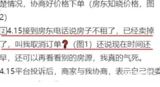 有着同样遭遇的苏女士称:4月初也在该平台预订了房子,4月15日房东表示房子已经卖掉了,不租了并要求退单。而在其他订房平台上,苏女士却发现那套所谓要被卖出的房子,但是价格已经比原来涨了200多元。